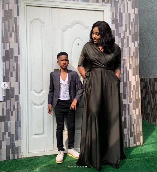 The took the pictures as they both attended his school party in Lagos State. The growing boy shares a striking resemblance with her only son who seems to have her kind of height.